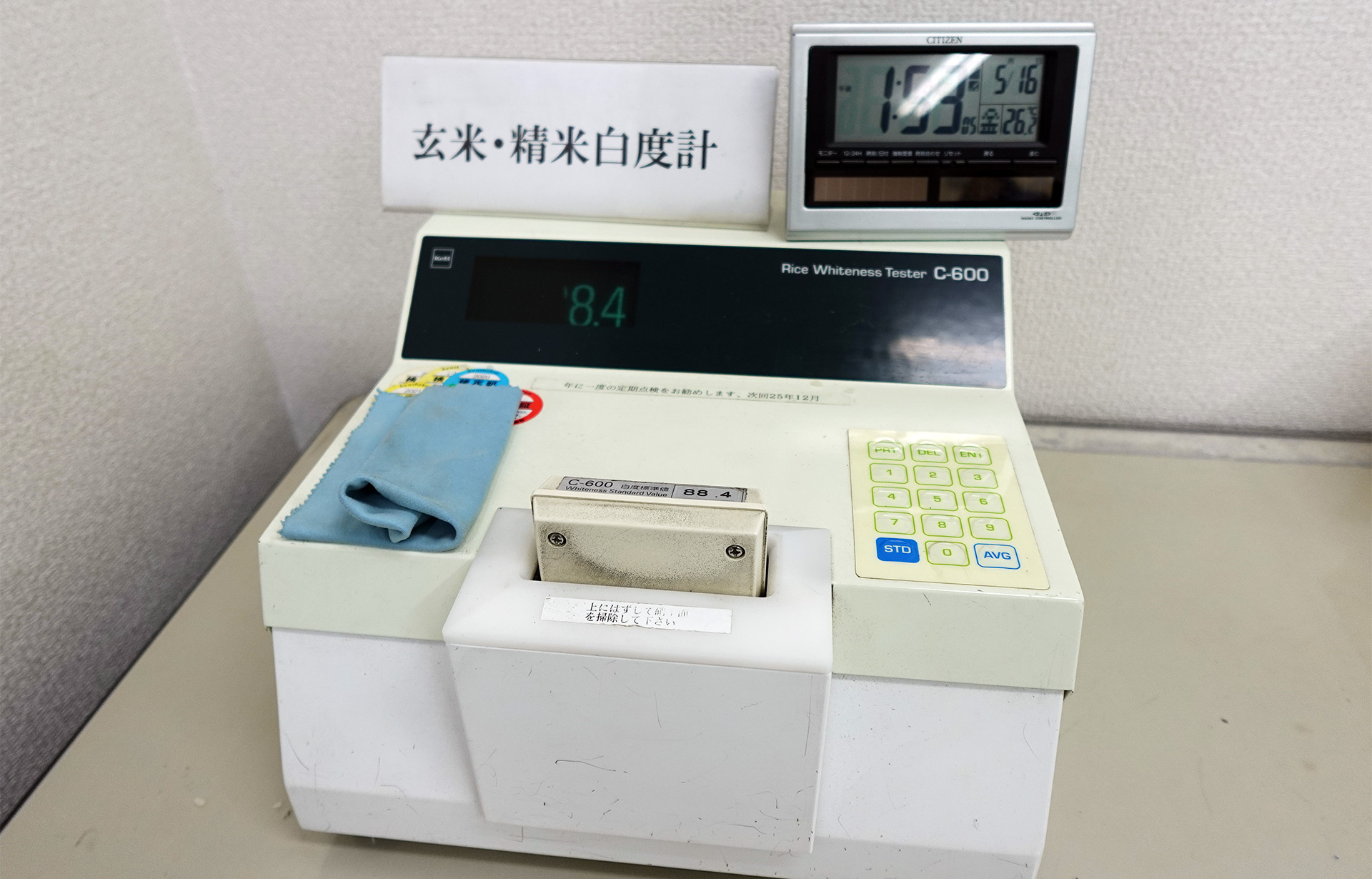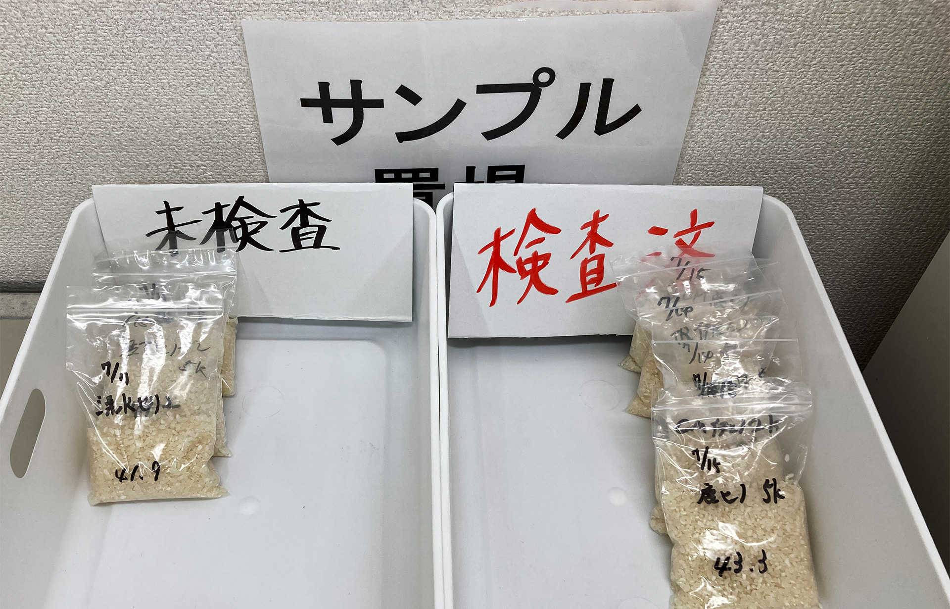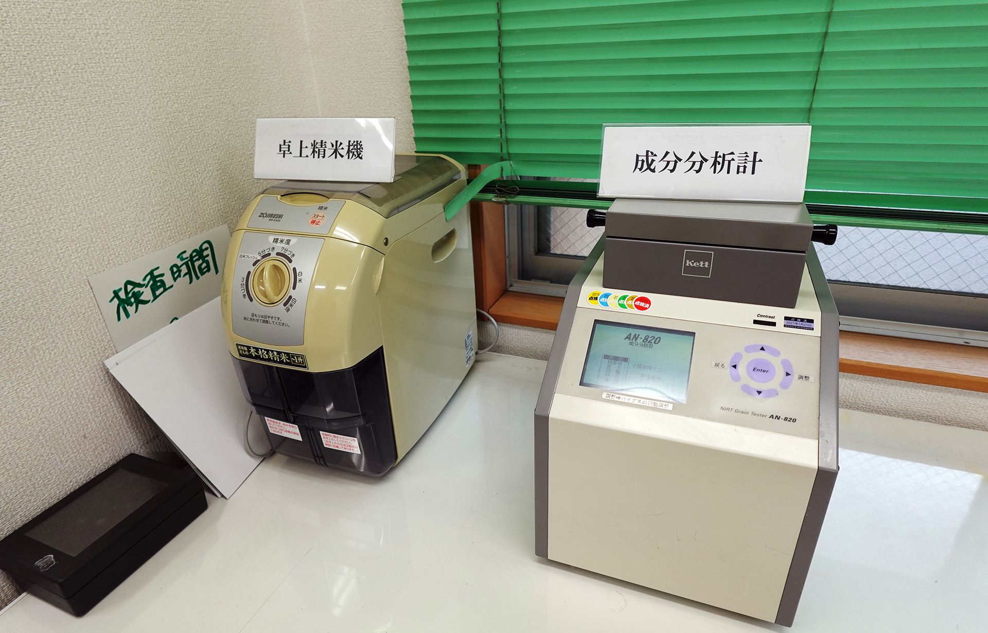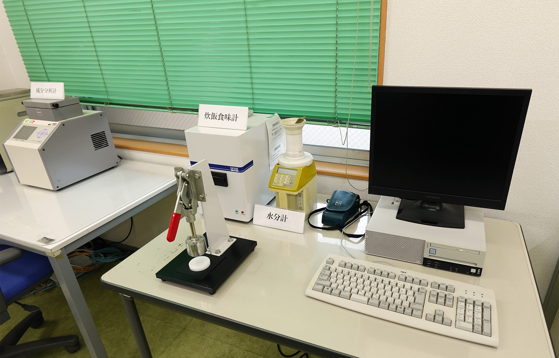 お米の品質を守るために、目に見える部分だけでなく、見えない部分にもこだわっています。サンプル検査や成分分析など、専門機器と人の目を活かした多角的なチェックで、確かな品質を追求しています。